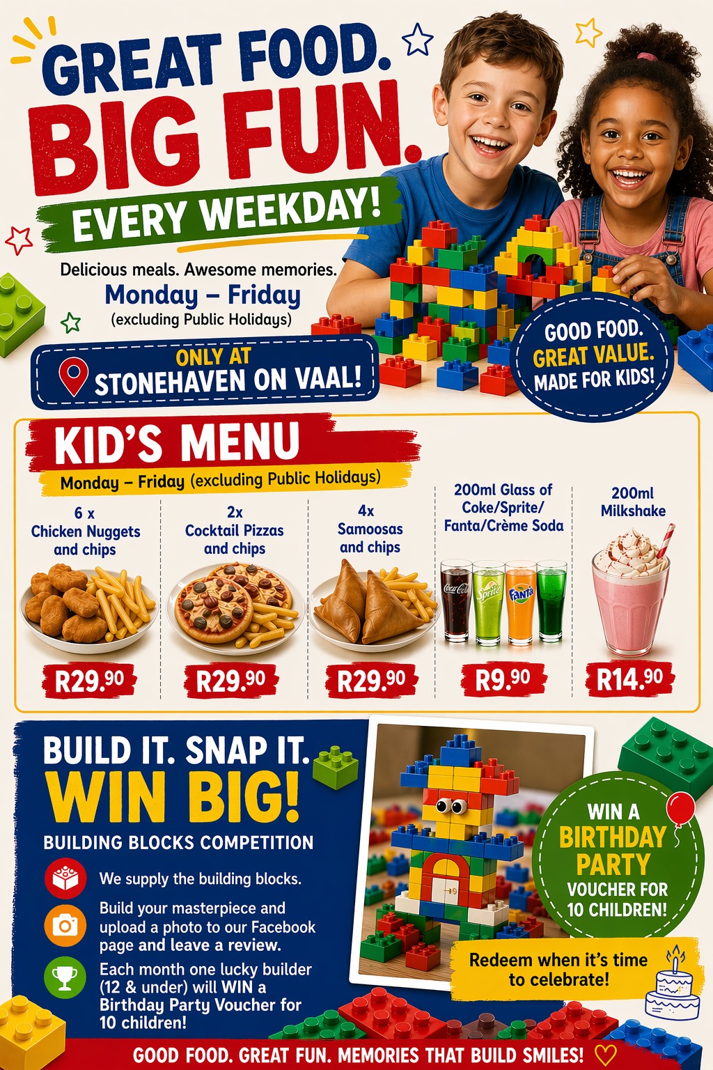 Dine at Stonehaven on Vaal, home to delicious meals, scenic river views, and a relaxed atmosphere. 🍽️ Enjoy alfresco dining in our lush gardens, cozy up in our wine cellar or river pub, or soak in the sunshine on our terrace or poolside. From hearty pub meals to gourmet dishes, there’s something for everyone!